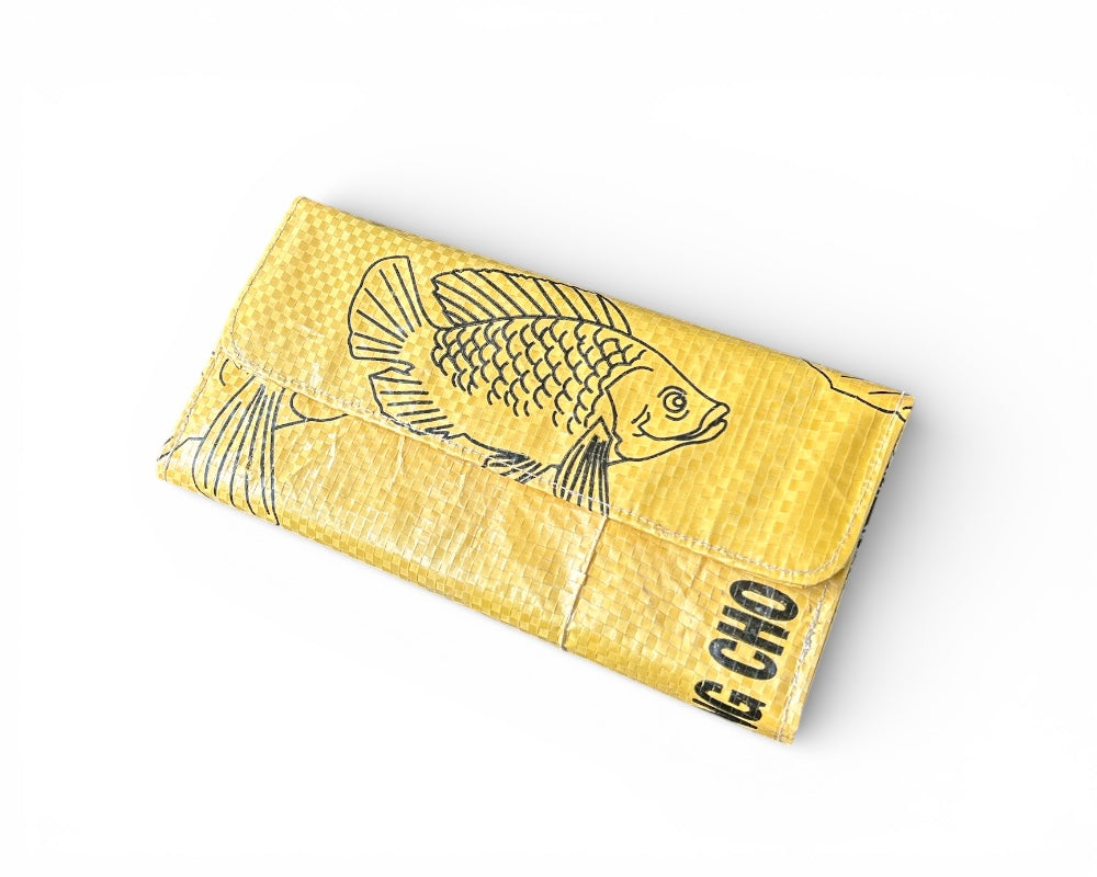 Exterior material is upcycled from feed, rice, sugar or cement bags. Interior material is recycled from plastic bottles and printed with our signature artwork.